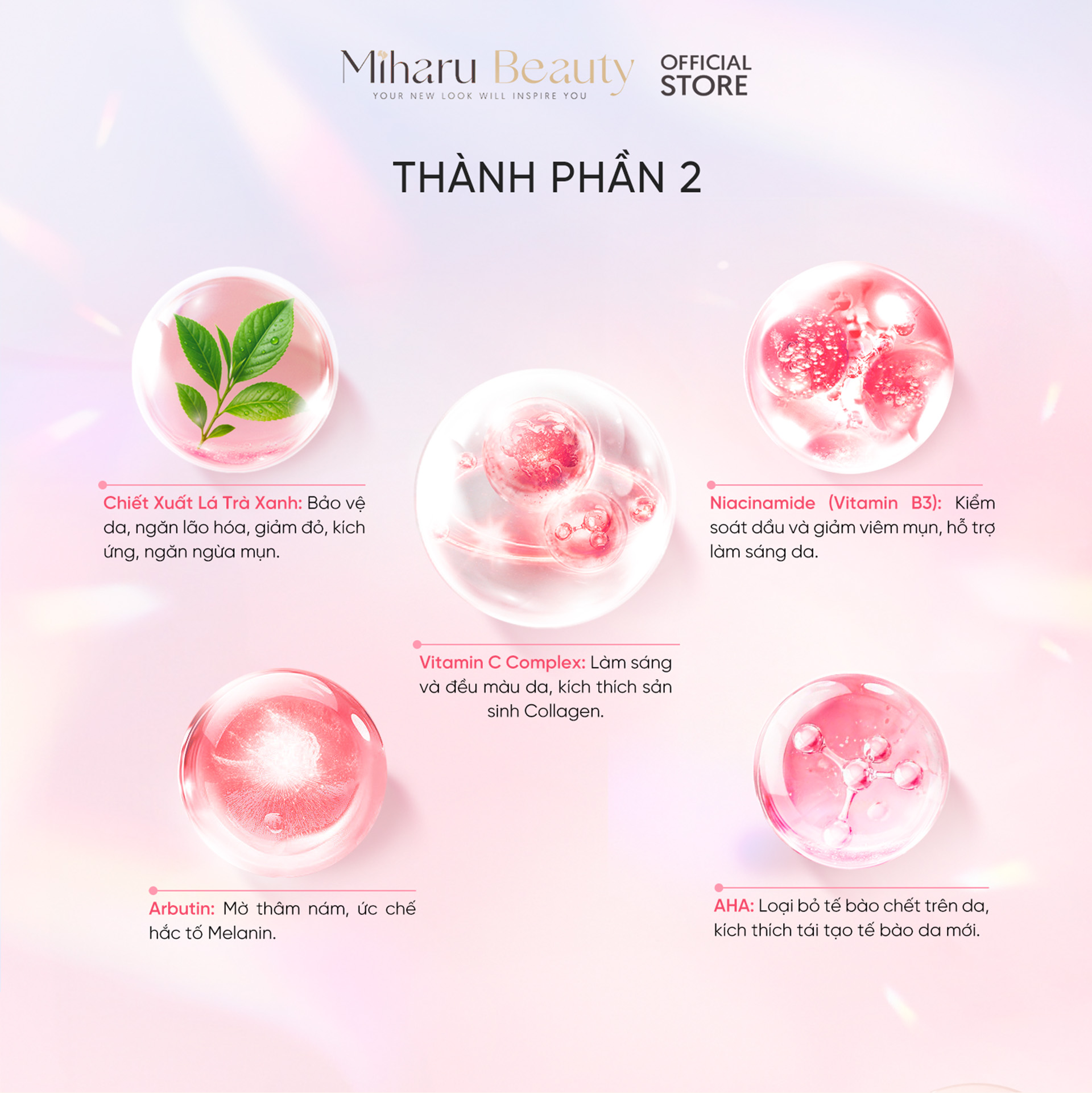 - Arbutin: mờ vết thâm nám, tàn nhang, làm trắng da, làm đều tông màu da bằng cách ức chế sự sản xuất hắc tố Melanin trong da.