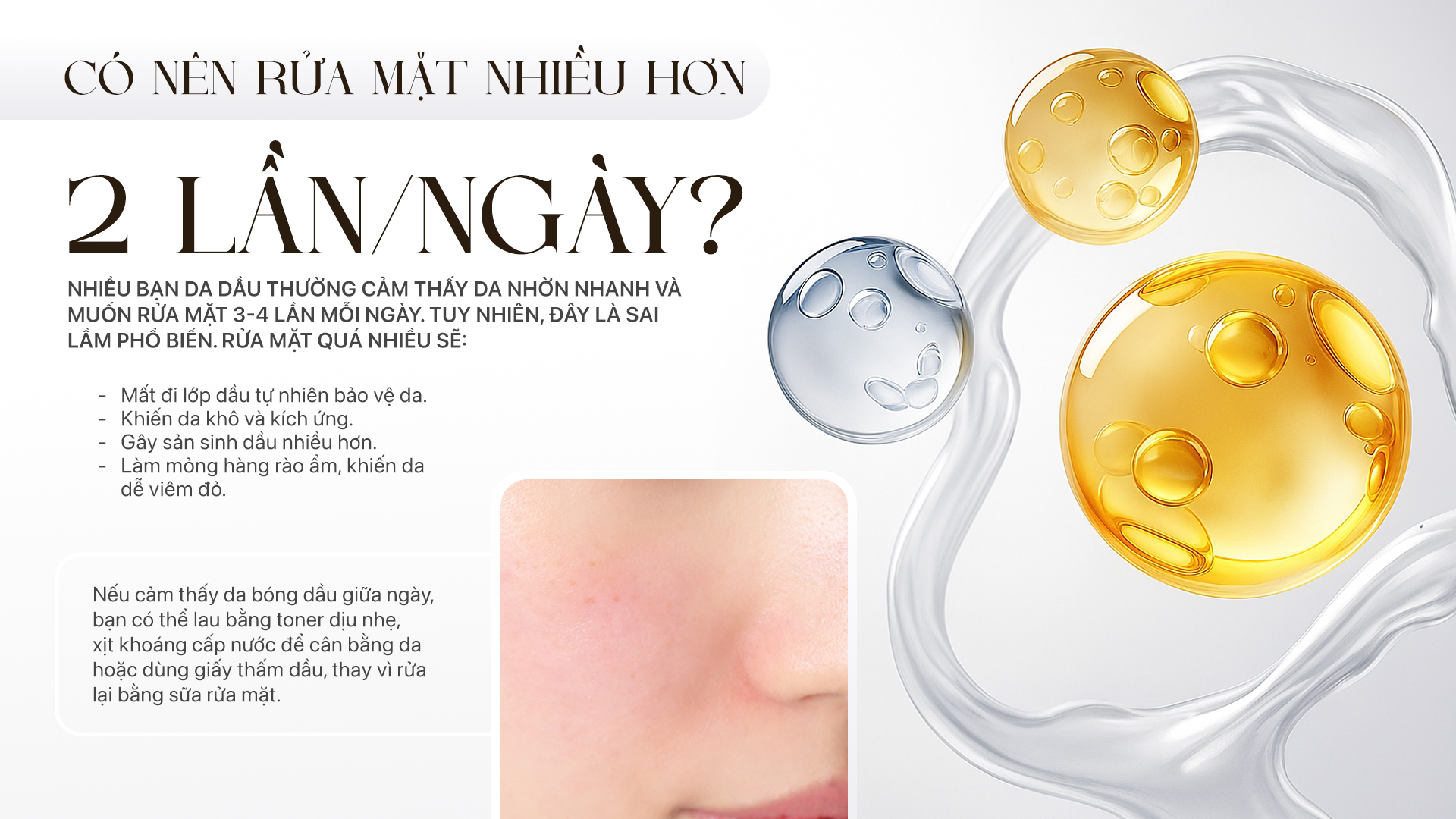 Nhiều bạn da dầu thường cảm thấy da nhờn nhanh và muốn rửa mặt 3-4 lần mỗi ngày. Tuy nhiên, đây là sai lầm phổ biến. Rửa mặt quá nhiều sẽ: