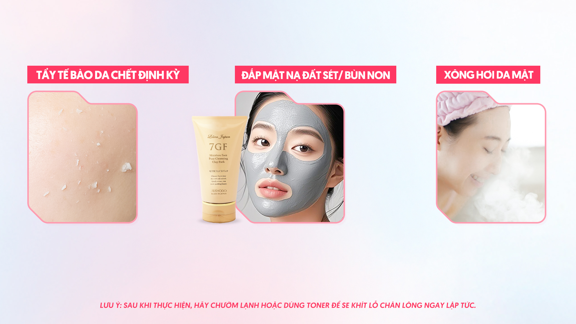 Lưu ý: sau khi thực hiện, hãy chườm lạnh hoặc dùng Toner để se khít lỗ chân lông ngay lập tức.