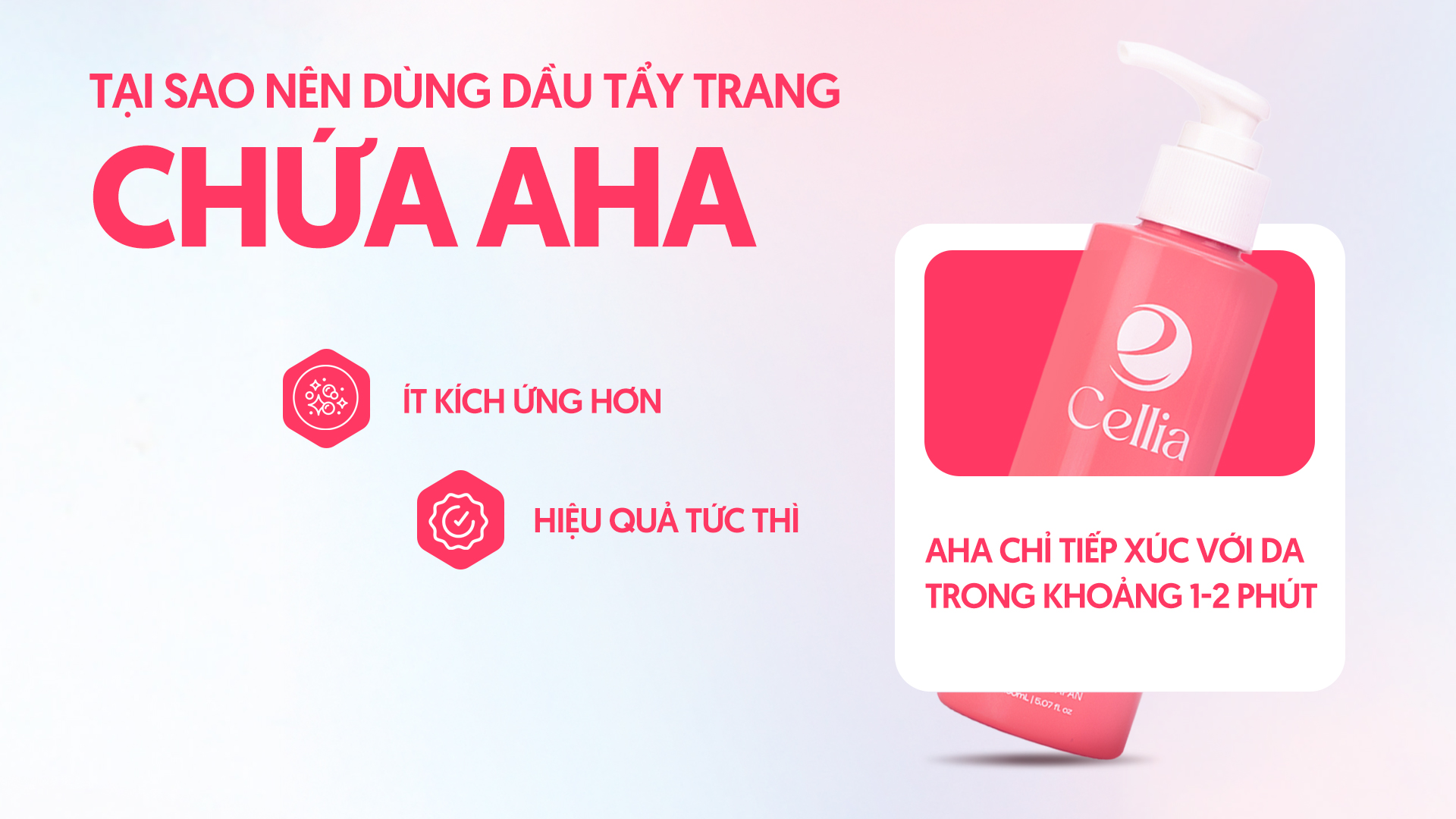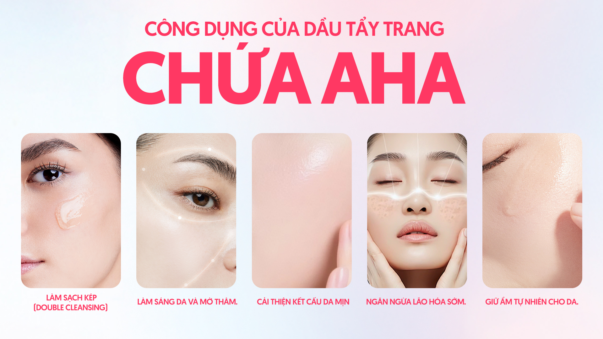 Khi kết hợp AHA với dầu tẩy trang, không chỉ làm sạch mà còn hỗ trợ giữ nước, giúp da mềm mại ngay sau khi rửa mặt.